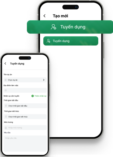 Tại đây nhà thầu có thể đăng tin tuyển dụng các vị trí còn thiếu cần dùng trong dự án.Tạo và quản lý dự án