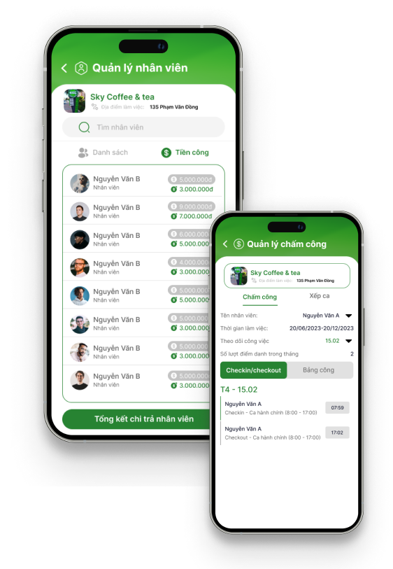 Tại đây, các chủ quán nhà hàng/cafe có thể quản lý nhân viên nào đang